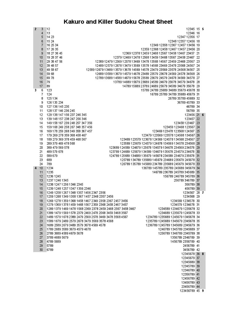Web welcome to the sudoku cheat sheet (cheet) project. Web knowing the combination of digits that can fit into a killer sudoku cage isn’t just a useful technique, sometimes it is absolutely necessary in order to solve or start a. Offers thousands of free graded puzzles. Helps you to improve your solving skills and practice solving strategies. Tips and tricks,.