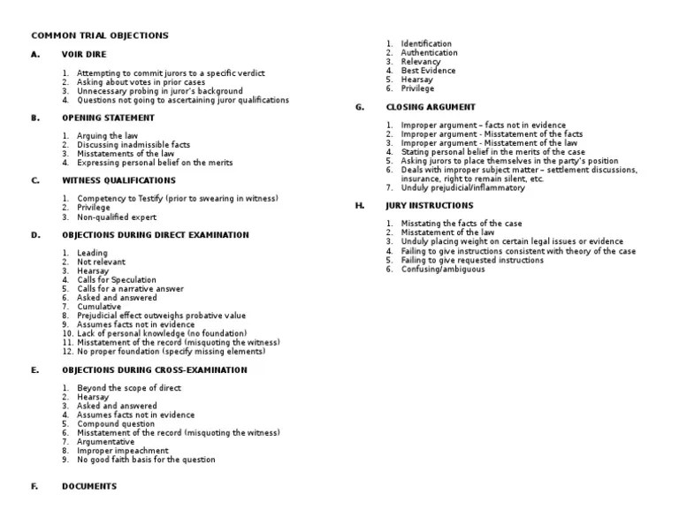 Trial Objections Cheat Sheet New York zonyonahdefrees