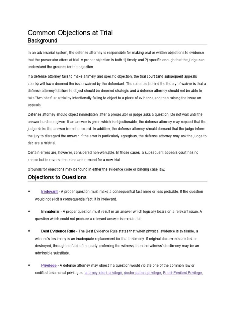 Web objections cheat sheet substantive objections relevance (401 & 402): Web texas trial objections cheat sheet. Does not make any fact of consequence more or. San francisco, california business owner.