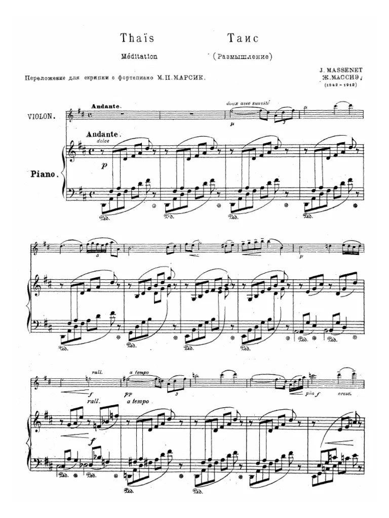 Thais Meditation Violin Sheet Music - 2.1.2 revised version (1898) 2.1.3 meditation (act ii, no.23) 2.1.4 ballet. Playing up to the fifth position, shifting, harmonics, dynamics, varying tempo, triplets & quintuplets, sul.
