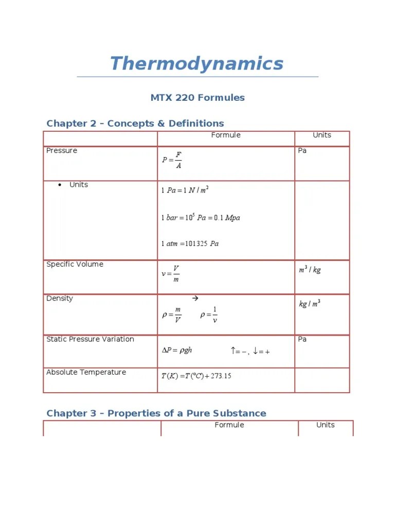 SOLUTION Thermodynamic Formula Sheet Tables Studypool