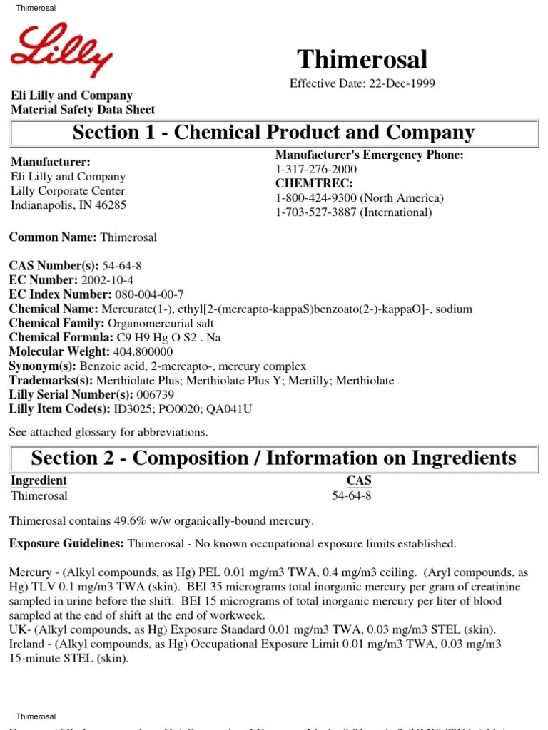 Eli Lilly Safety Data Sheet Feuille Du Fabricant Sur La Sécurité Du