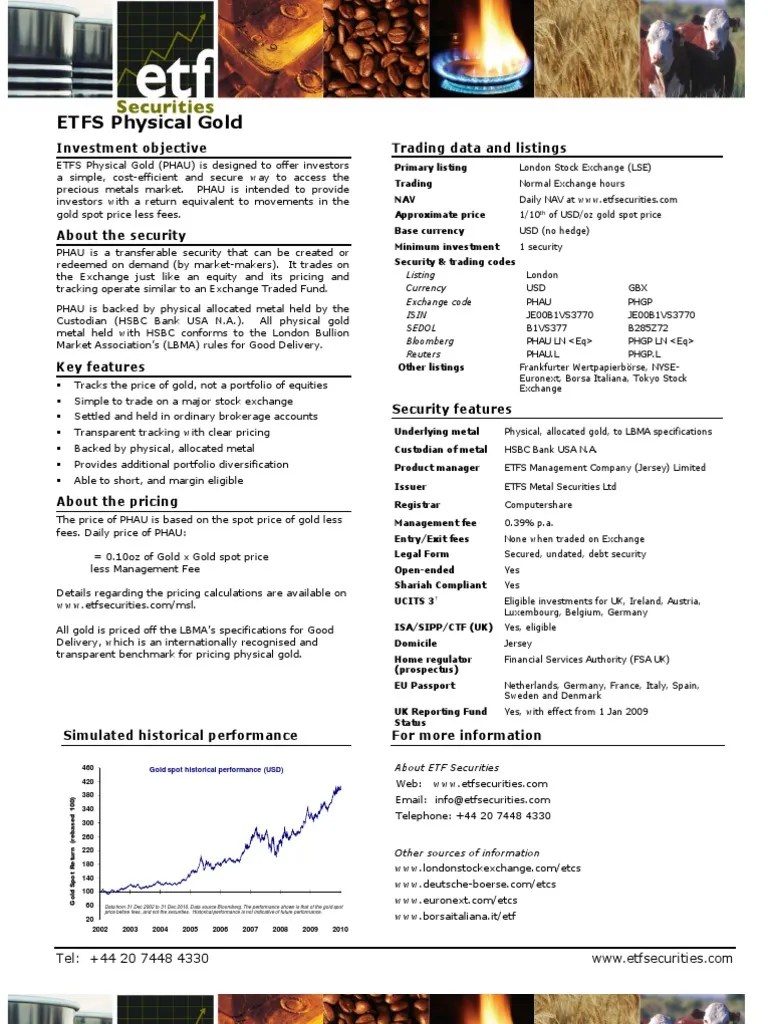 ETFS Physical Gold Fact Sheet London Stock Exchange Exchange Traded