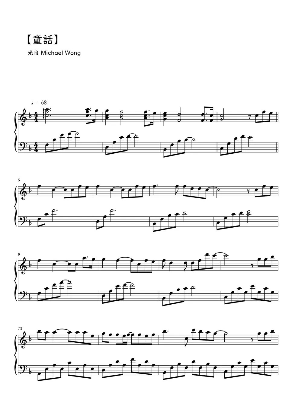 光良 Michael Wong 童話 Fairy Tale (Tong Hua) (Sheet Music, MIDI,) by