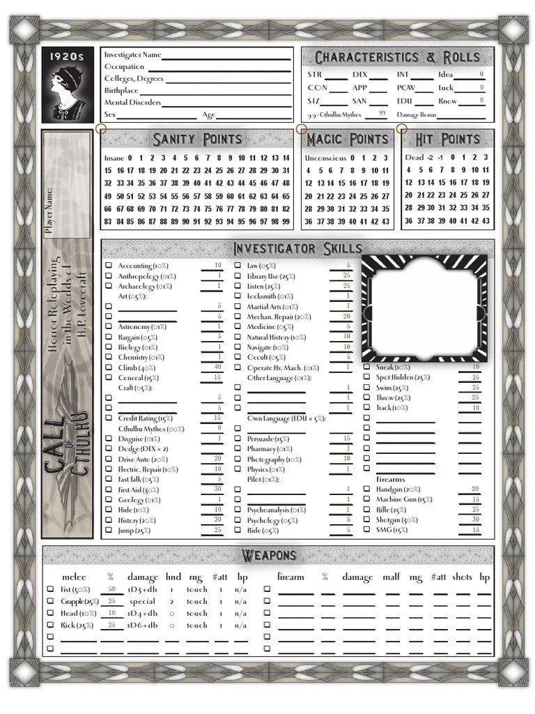 Call Of Cthulhu Character Sheet Generator stlazgard