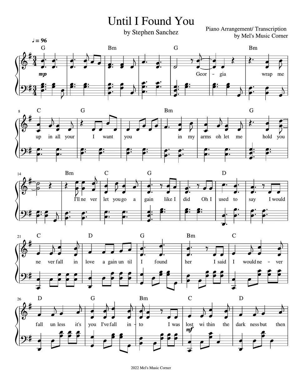 Stephen Sanchez Until I Found You (piano sheet music) Sheets by Mel