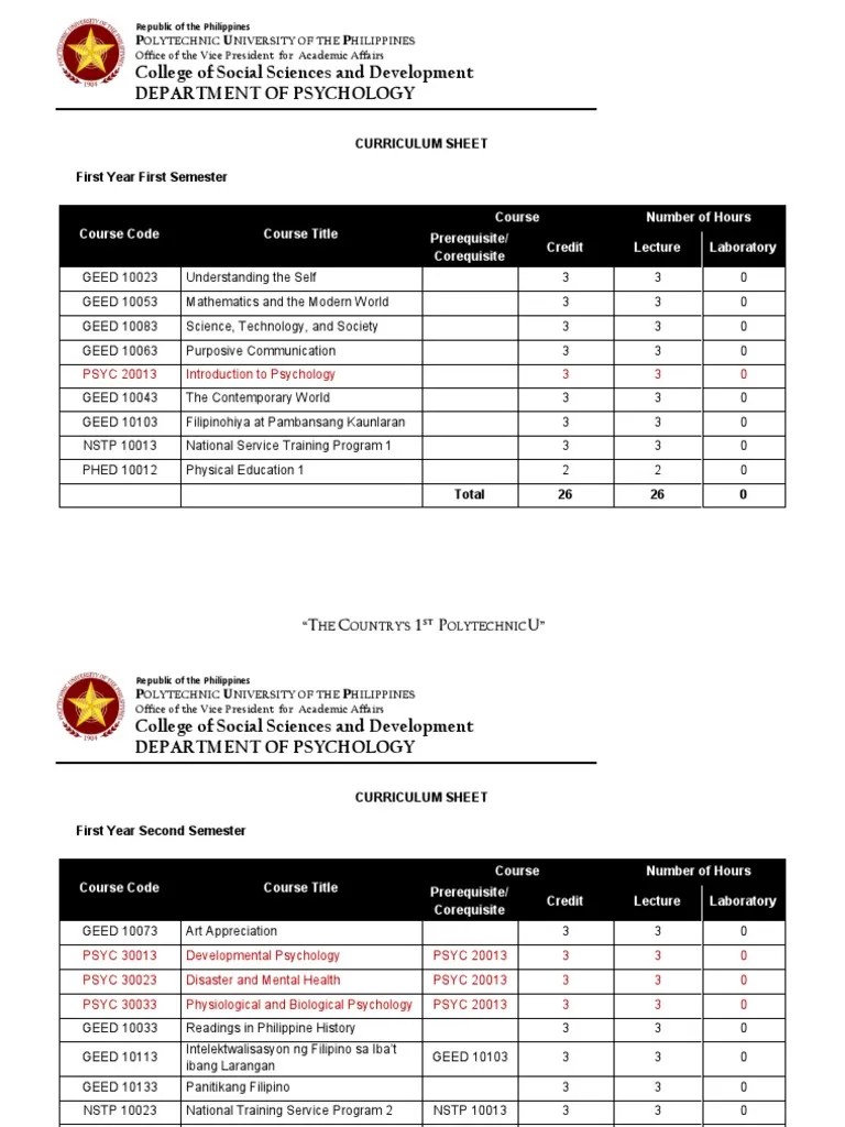 Pup Psychology Curriculum Sheet Institute Of Technology Psychology