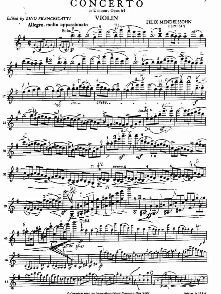 Mendelssohn Violin Concerto 1st Mvt Violin Part