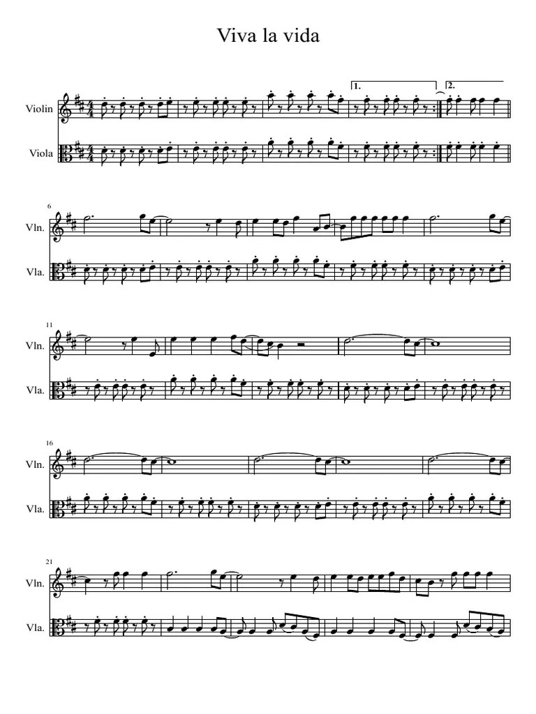 Viva la Vida Sheet music for Violin, Cello Download free in PDF or