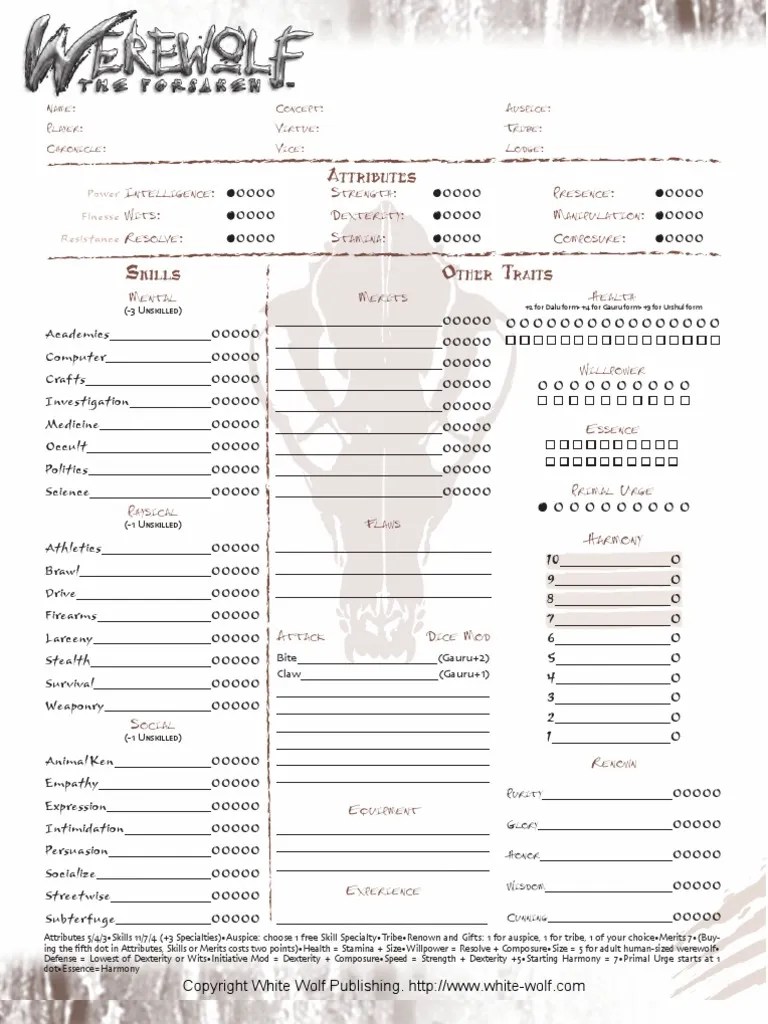 Web old werewolf the forsaken sheets(black and white) [forsaken sheets built using the werewolf the apocaplypse border]. Web werewolf the apocalypse 5th edition character sheet name: