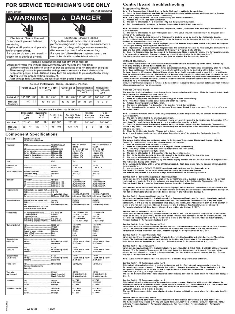 This sheet contains important technical service data. Tech sheet do not remove or destroy danger. Web feature sheet 18 cu. Tech sheet / wiring diagram. This sheet contains important technical service data.