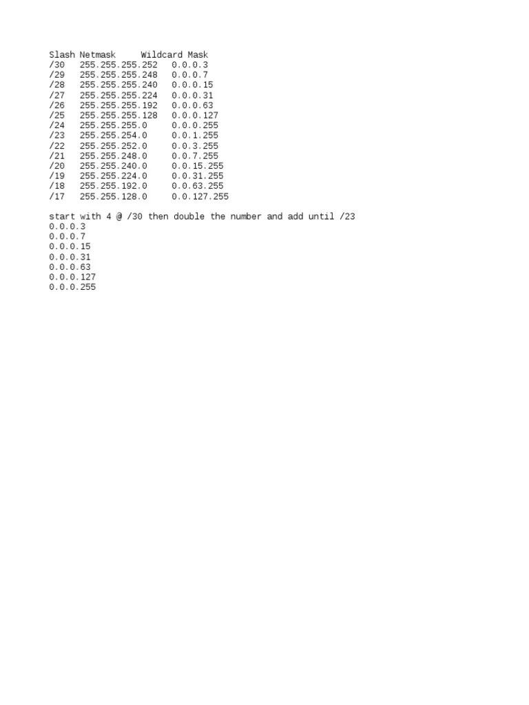wildcard mask cheat sheet.txt