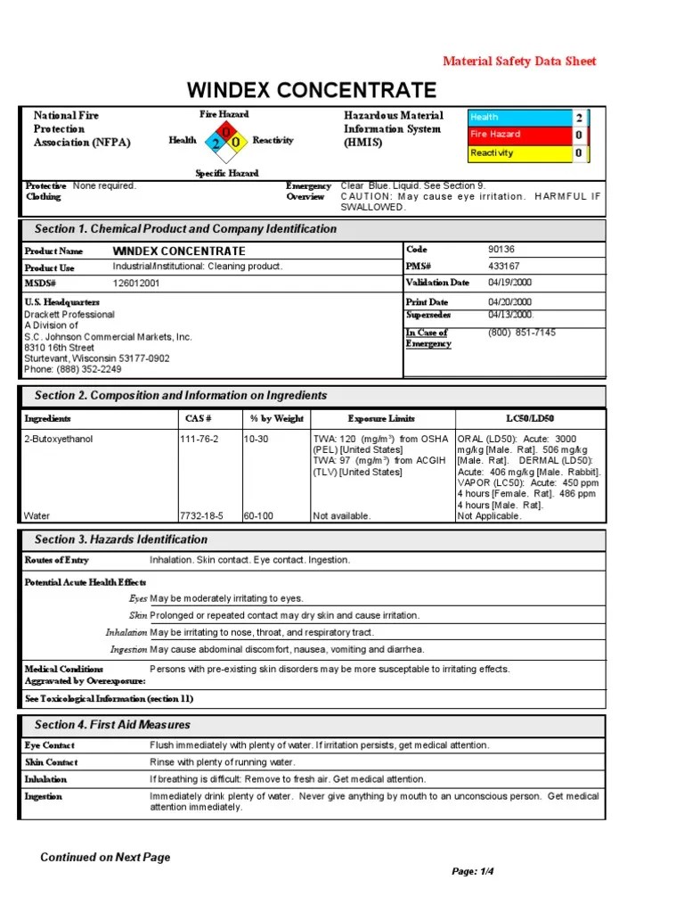 Windex Msds Sheet - Web safety data sheet windex section: Product and company identification product name other means of.