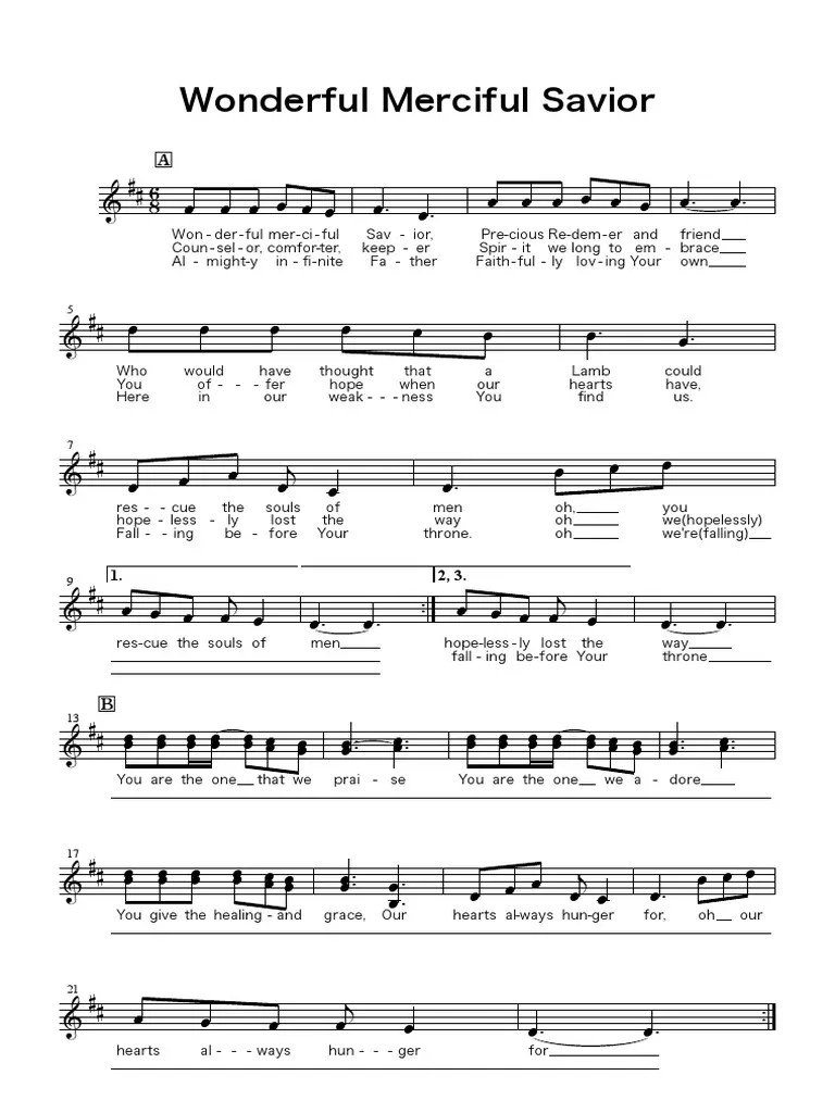 Wonderful, Merciful Savior hymn score Hymn sheet music, Download