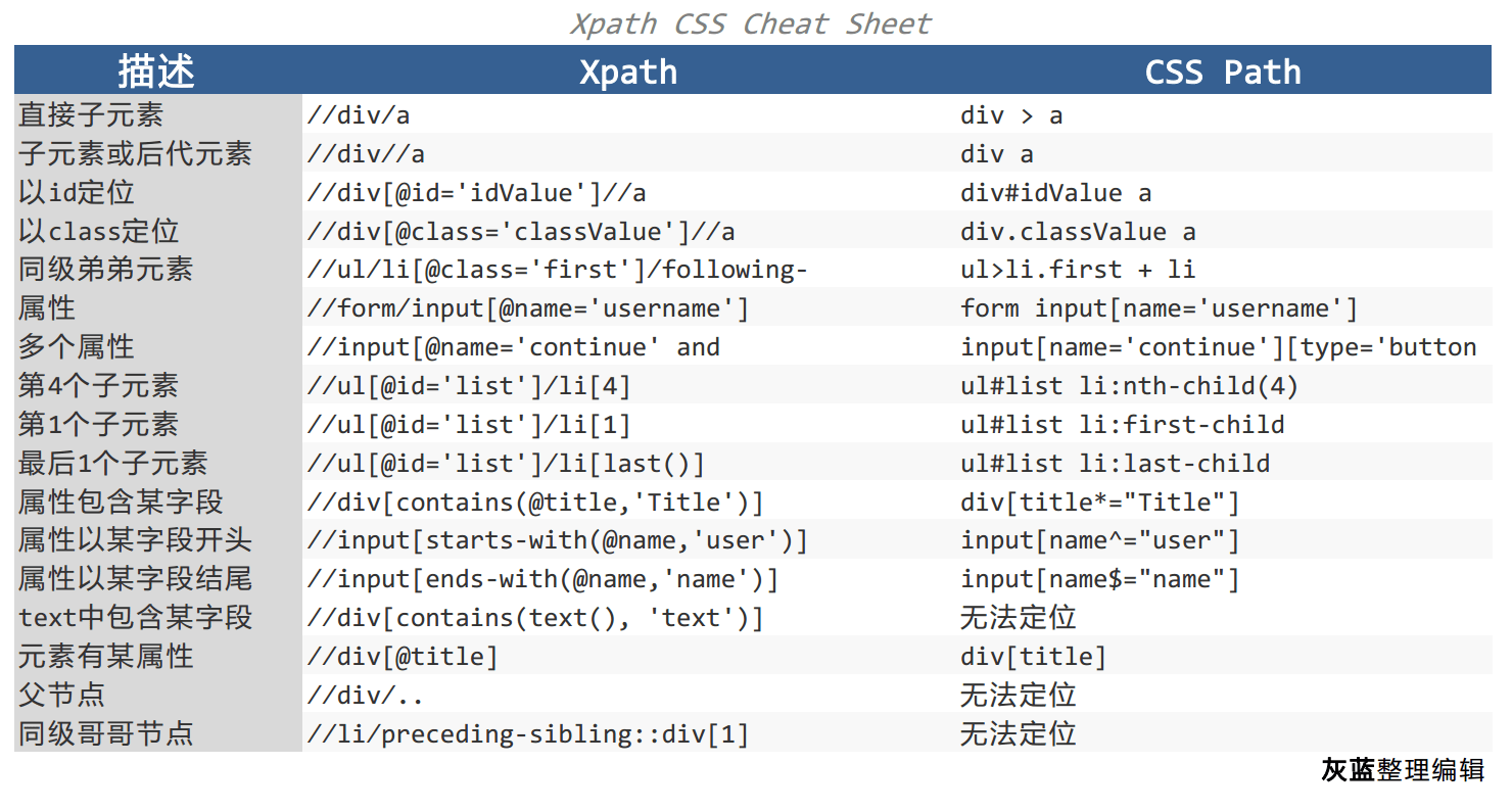 Python selenium —— XPath and CSS cheat sheet CSDN开发云