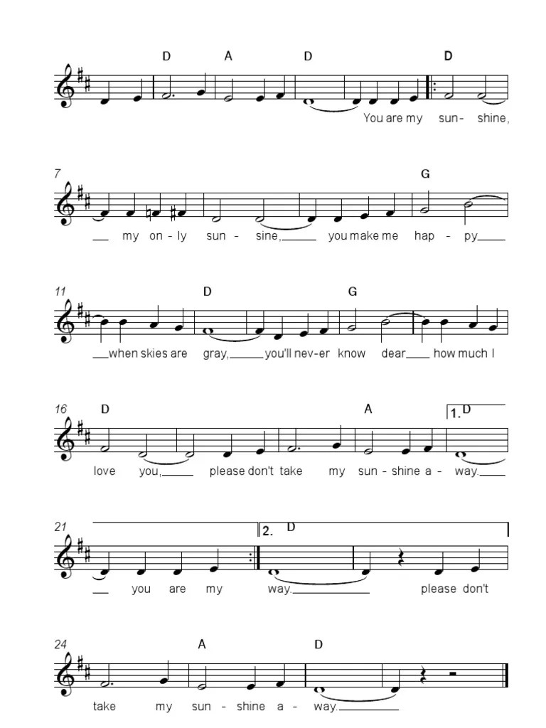 Free Printable Piano Sheet Music For You Are My Sunshine Free Printable